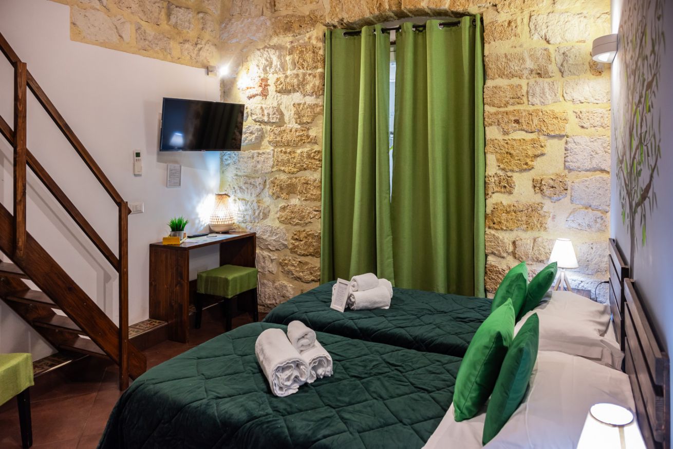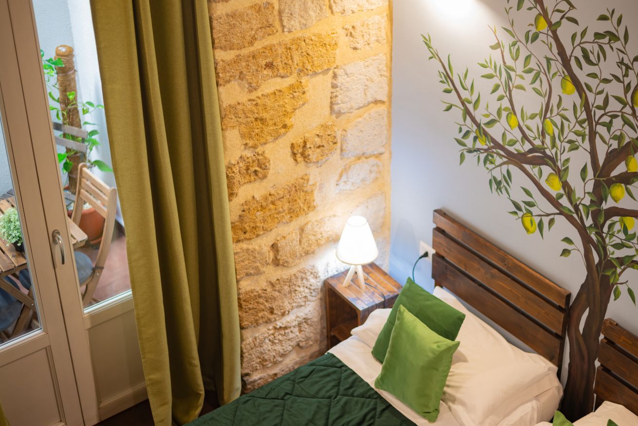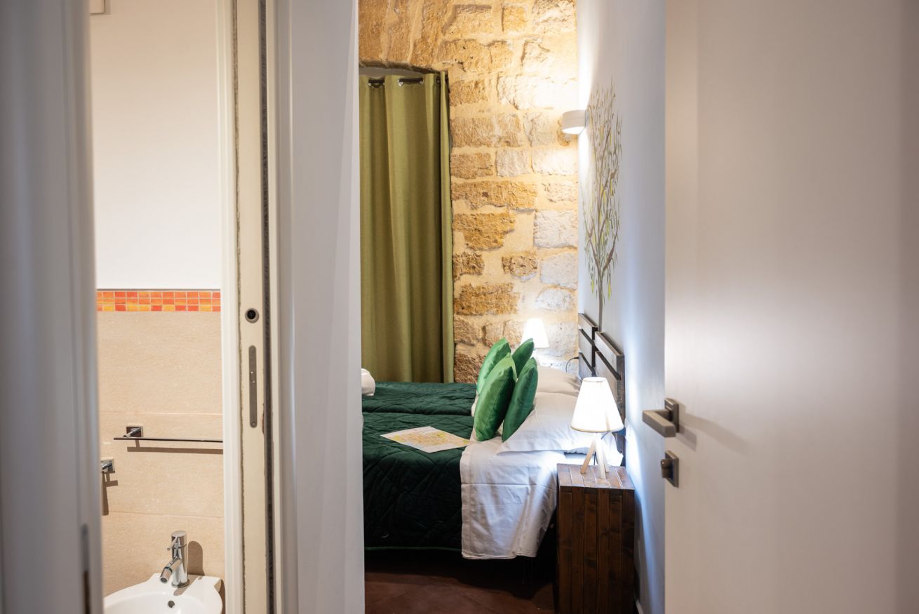 Camera doppia o tripla con affaccio su piccolo patio interno. Bagno privato con doccia e cromoterapia.