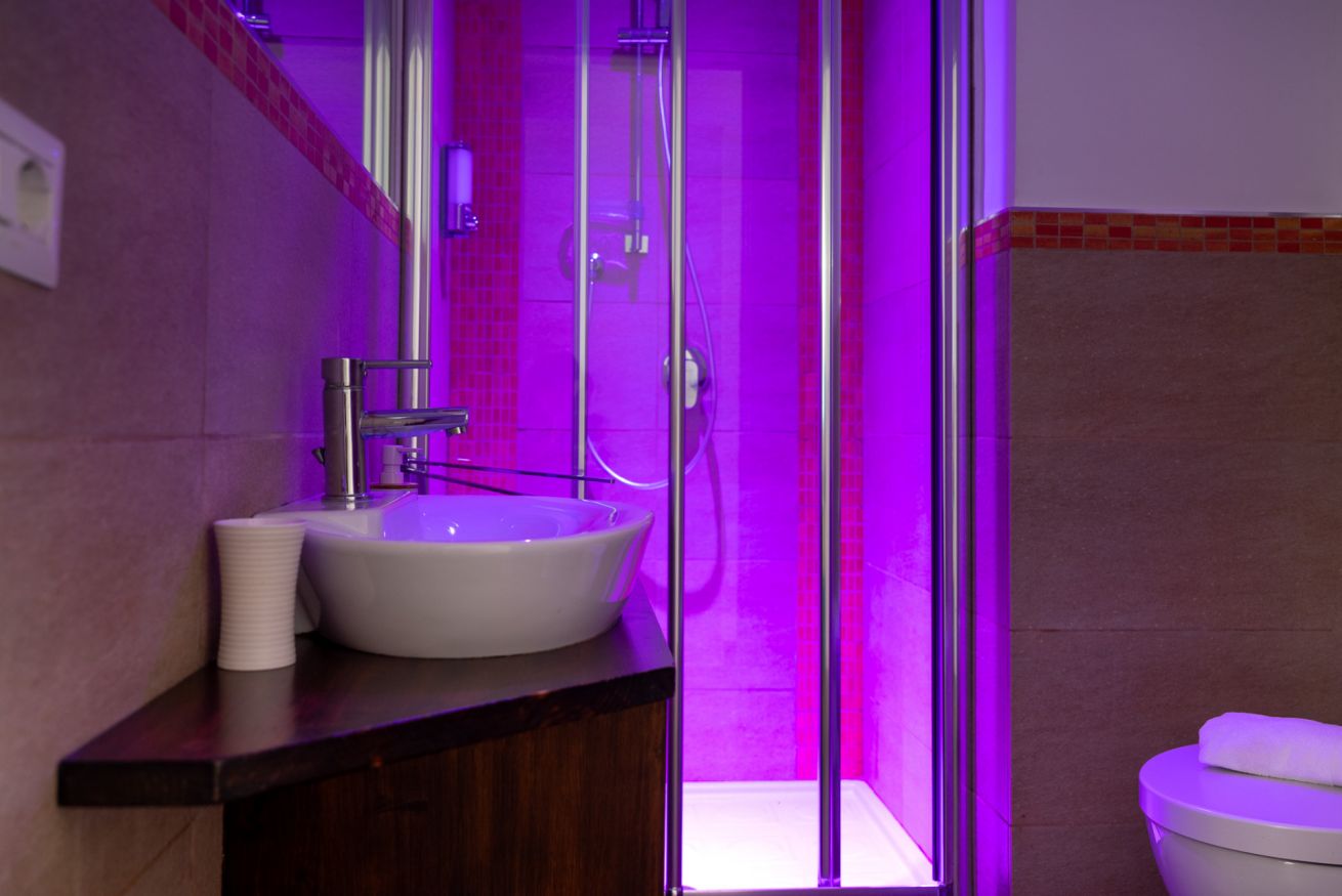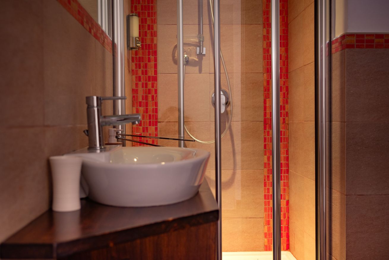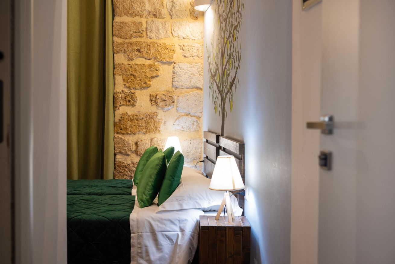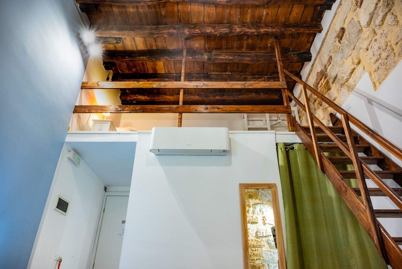 Camera doppia o tripla con affaccio su piccolo patio interno. Bagno privato con doccia e cromoterapia.