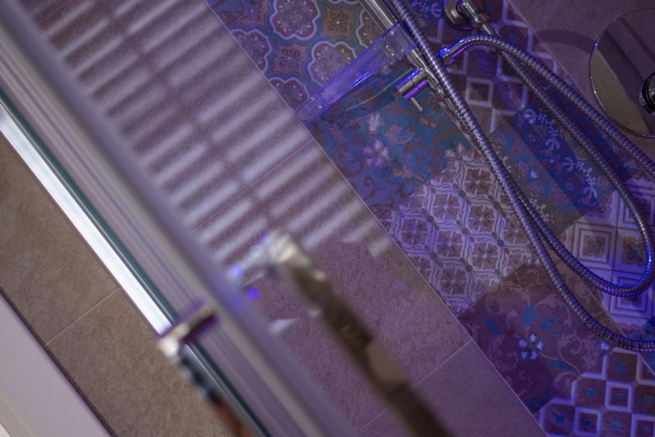 Camera luminosa con balcone. Matrimoniale dotata di bagno privato con doccia e cromoterapia.
